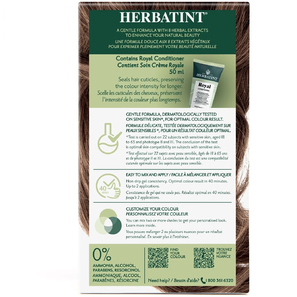 3- WASH AND CONDITION YOUR HAIR Once the colour has processed, tilt your head back to avoid getting product in your eyes and rinse thoroughly until the water runs perfectly clear. Then shampoo your hair using preferably the Herbatint Normalising Shampoo, another rinse and towel dry. Finish by applying Herbatint Royal Cream, regenerating conditioner. Leave in for 5 minutes, rinse again and style your hair as usual.