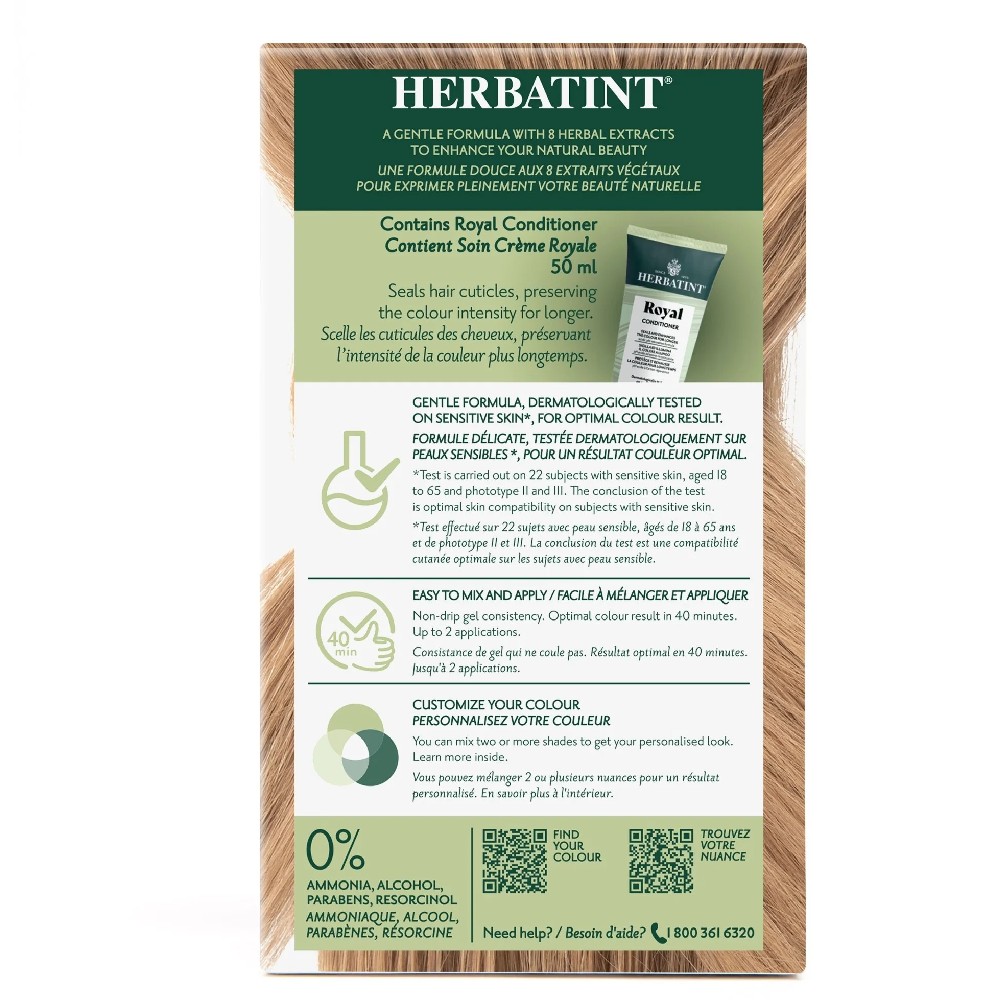 3- WASH AND CONDITION YOUR HAIR Once the colour has processed, tilt your head back to avoid getting product in your eyes and rinse thoroughly until the water runs perfectly clear. Then shampoo your hair using preferably the Herbatint Normalising Shampoo, another rinse and towel dry. Finish by applying Herbatint Royal Cream, regenerating conditioner. Leave in for 5 minutes, rinse again and style your hair as usual.