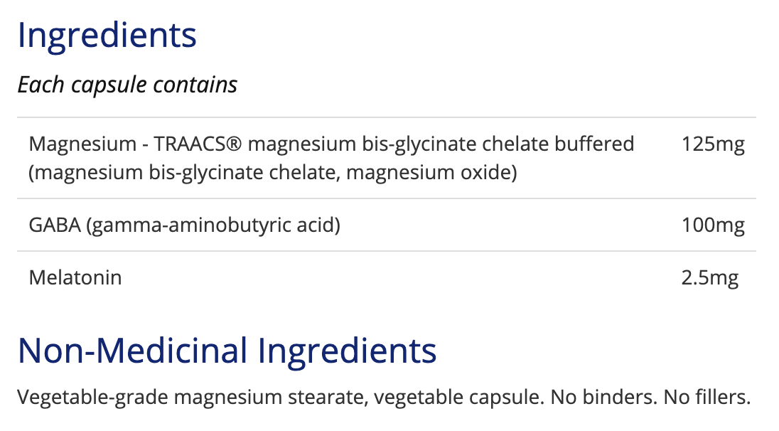 • Therapeutic 125mg of magnesium bis-glycinate, 100mg of GABA (gamma-aminobutyric acid)