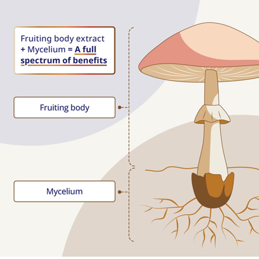 Combining the mycelium and fruiting body extract ensures you get a highly potent dose of powerhouse antioxidants, filled with all the beneficial compounds to support your health goals. That way you get the full spectrum of benefits each mushroom has to offer.