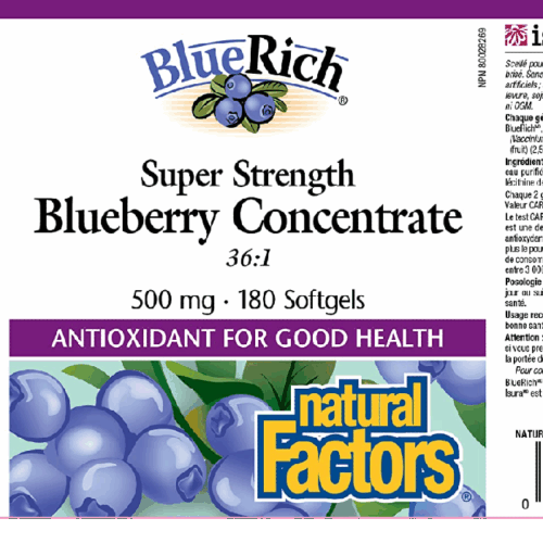 Natural Factors BlueRich Super Strength Blueberry Concentrate 500mg 90 Softgels
