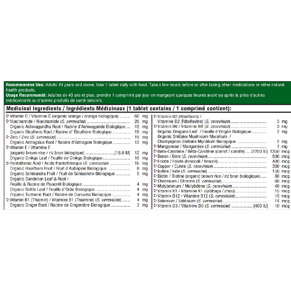 MegaFood® Men Over 40™ One Daily is specifically formulated without iron to support the health and wellbeing of men over the age of 40.* (Iron is not recommended for men unless specifically directed by their healthcare practitioner.) Our multi nourishes the body in a convenient, once-daily tablet that can be taken with or without food, and includes FoodState® B vitamins to assist with healthy cardiovascular function, healthy energy production and nervous system health.* 400 IU (10 mcg) of vitamin D supports healthy bones*, and an array of whole foods and herbs provide additional phytonutrients.*