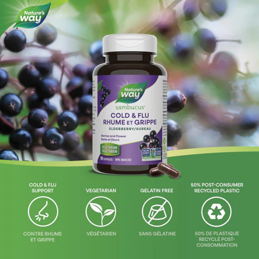 Home Cold Nature’s Way Sambucus Elderberry Cold and Flu Care 90 capsules