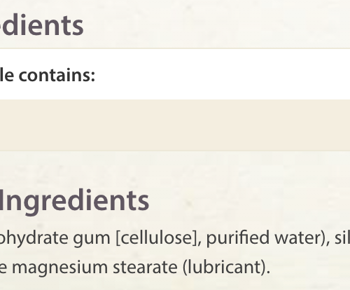 Contains no: Gluten, soy, wheat, eggs, dairy, yeast, citrus, preservatives, artificial flavour or colour, starch, or sugar.