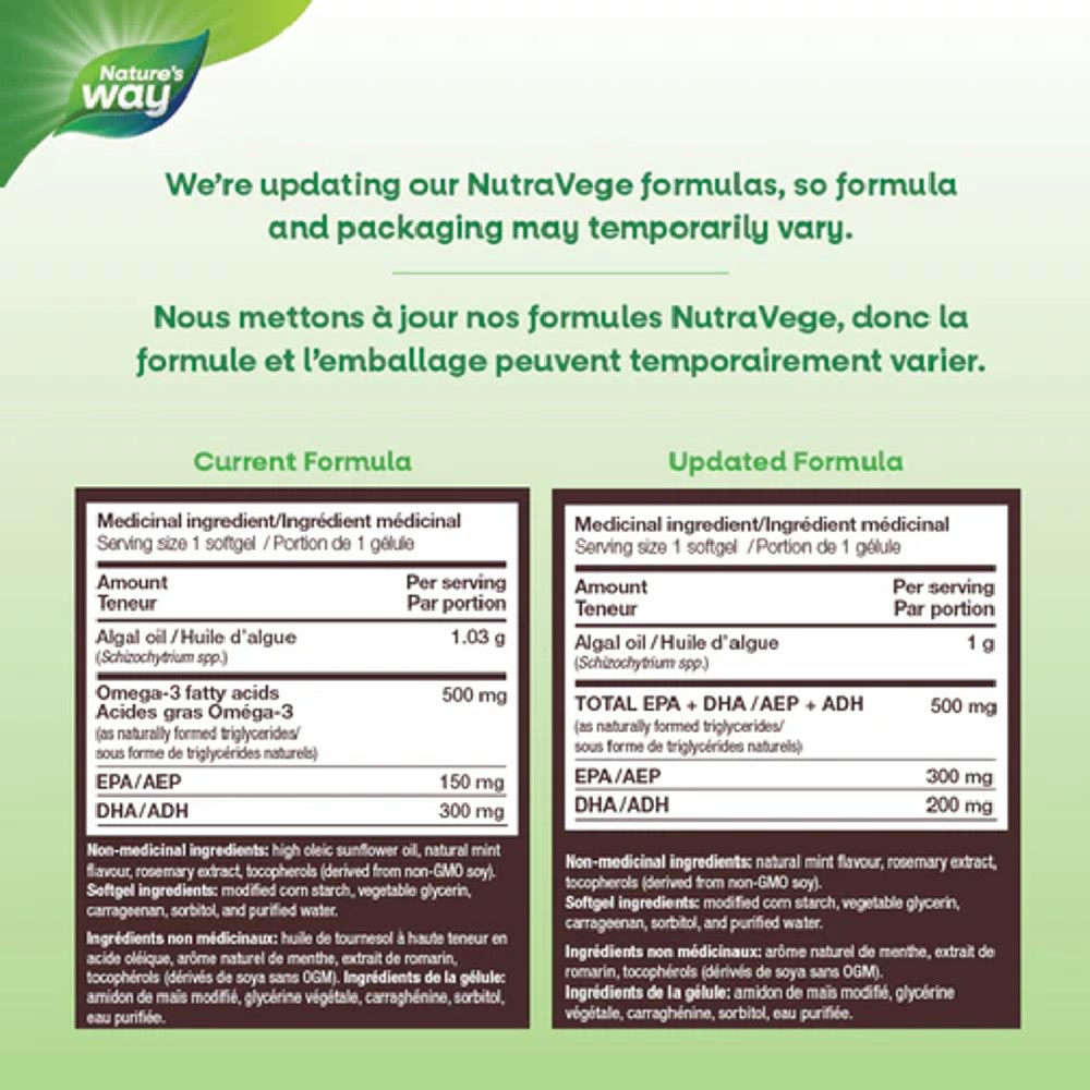 NutraVege is a pure and potent plant-based omega-3 formula. 500mg of EPA+DHA from algal oil, NutraVege is 100% vegetarian and vegan-friendly. NutraVege helps to support the maintenance of good health as well as eye, brain, and cardiovascular health . Just one softgel per day in a fresh mint flavour.