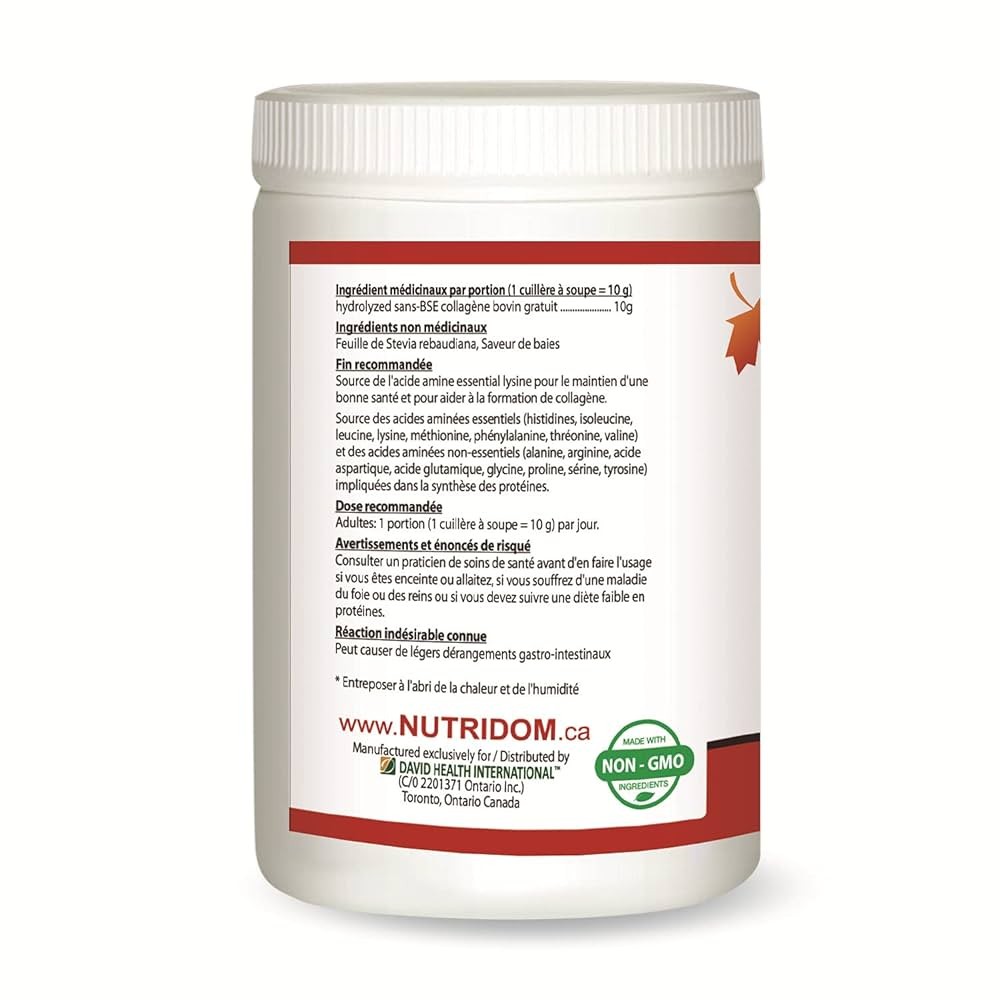 Nutridom Beauty Collagen for your skin Nutridom Beauty Collagen provides highly bioavailable and soluble Type I bovine collagen peptide with 18 different amino acids profile. It is clinically proven, gluten-free, Kosher certified and Non-GMO.