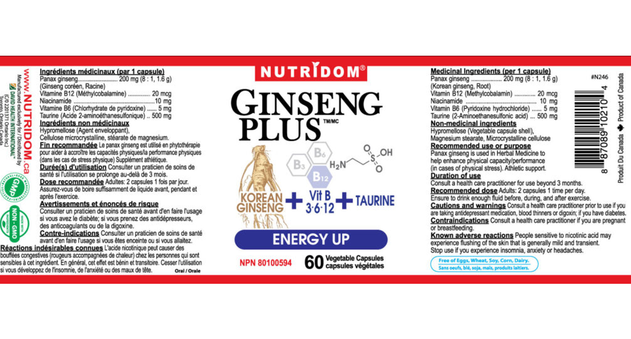 Nutridom Ginseng Plus Energy up 60 Vegetable Capsules