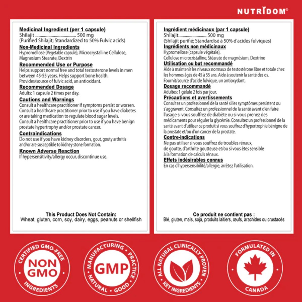 Nutridom Shilajit is crafted with a clean-label formula that is Non-GMO tested, Vegan, Gluten-Free, and GMP compliant. It is free from wheat, dairy, soy, egg, peanut, and shellfish, making it suitable for a wide range of dietary needs.