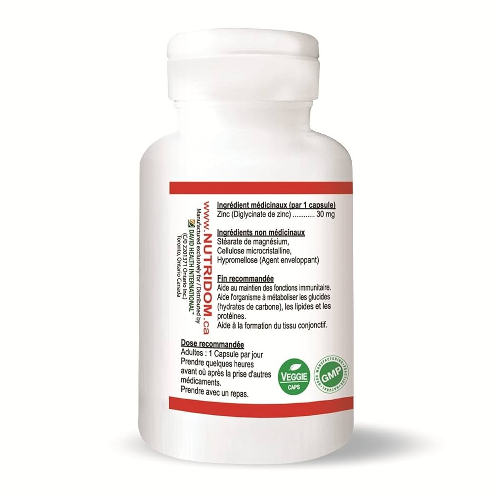 Zinc (Zinc Bisglycinate) ………….30 mg